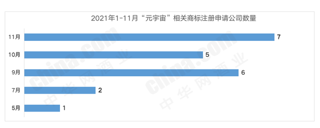 将上述21件商标按照注册月份、注册地、注册公司经营业务、申请状态分类后发现,今年11月成为企业注册“元宇宙”酒类商标高峰期,截至11月18日共有7家公司,占据整体三成以上,9月份次之。